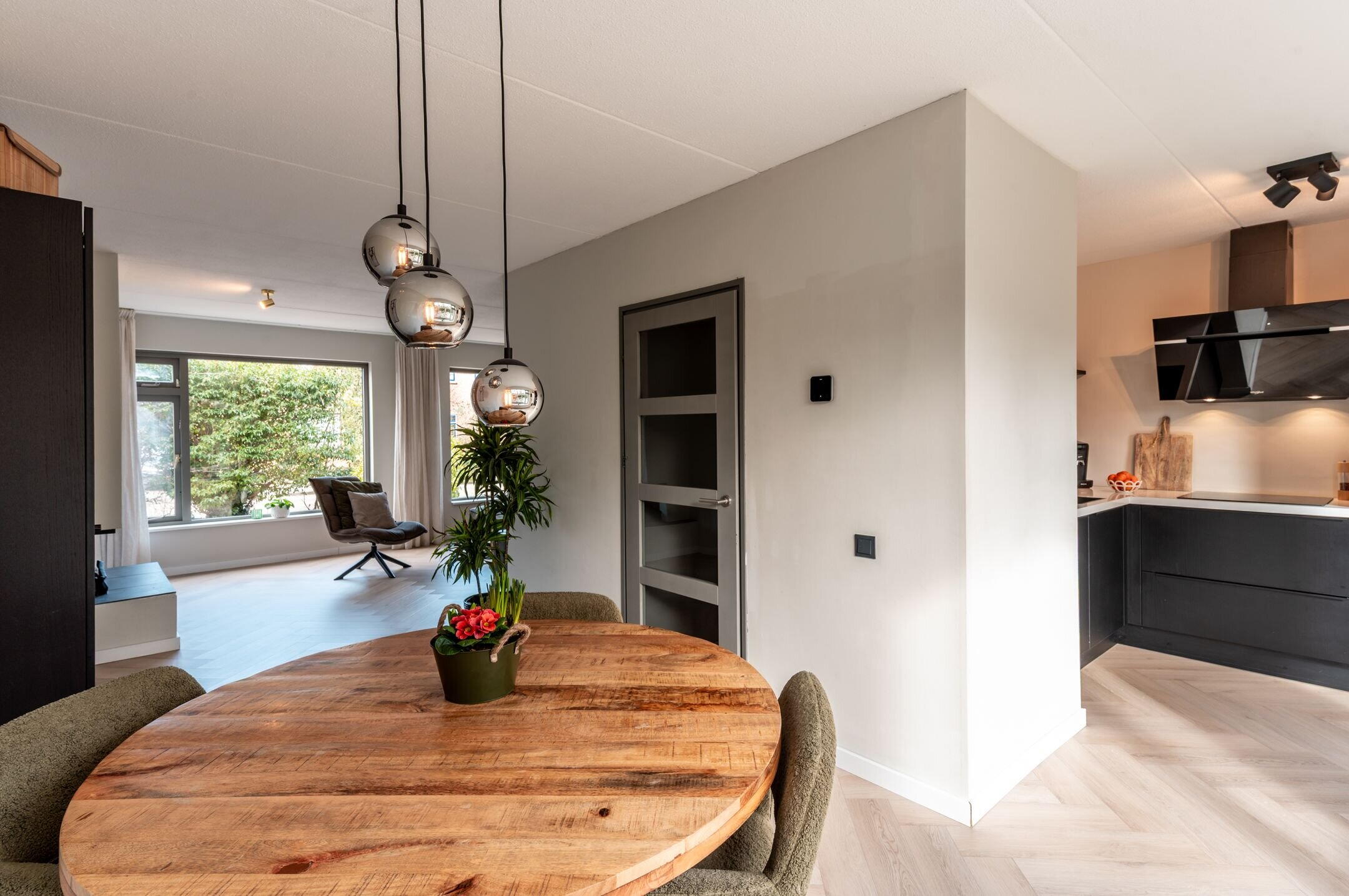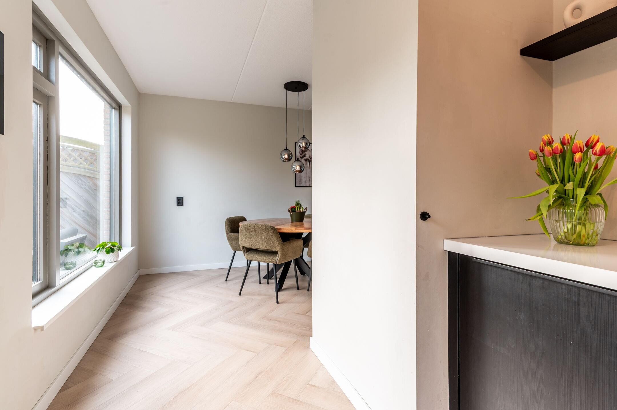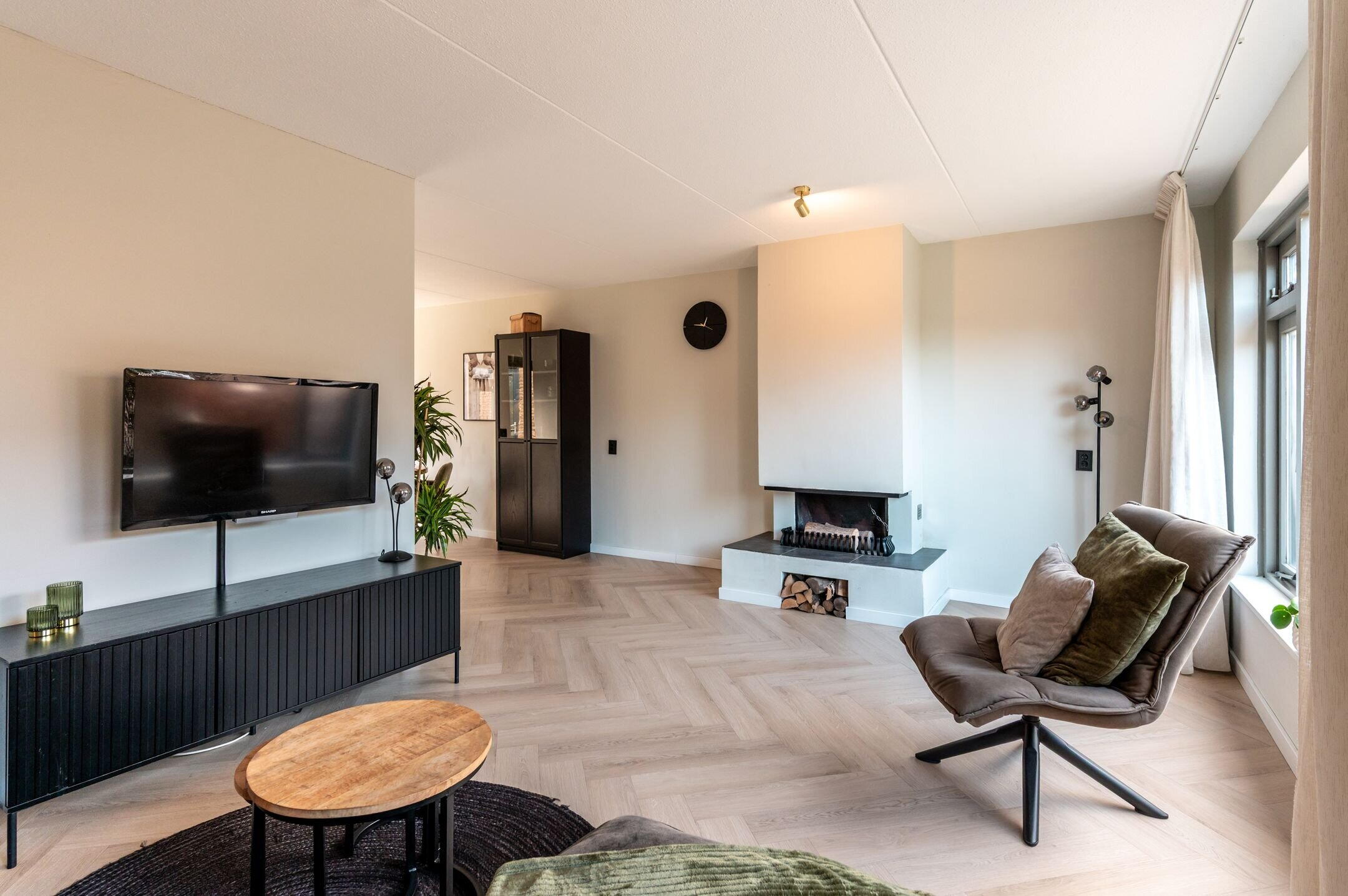 Begane grond: Entree; hal met toilet met fonteintje, meterkast (vervangen in 2023), trapopgang en toegang tot de woonkamer/ keuken; aan de voorzijde gelegen woonkamer van 27m² met open haard; aan de achterzijde bevindt zich de luxe inbouwkeuken uit 2023 in hoekopstelling welke is voorzien van een combi-magnetron, een geïntegreerde vaatwasser, inductiekookplaat, design afzuigschouw, Quooker, koelkast, kastruimte en voldoende ruimte voor een flinke eetkamertafel; vanuit de keuken is er toegang tot de tuin.