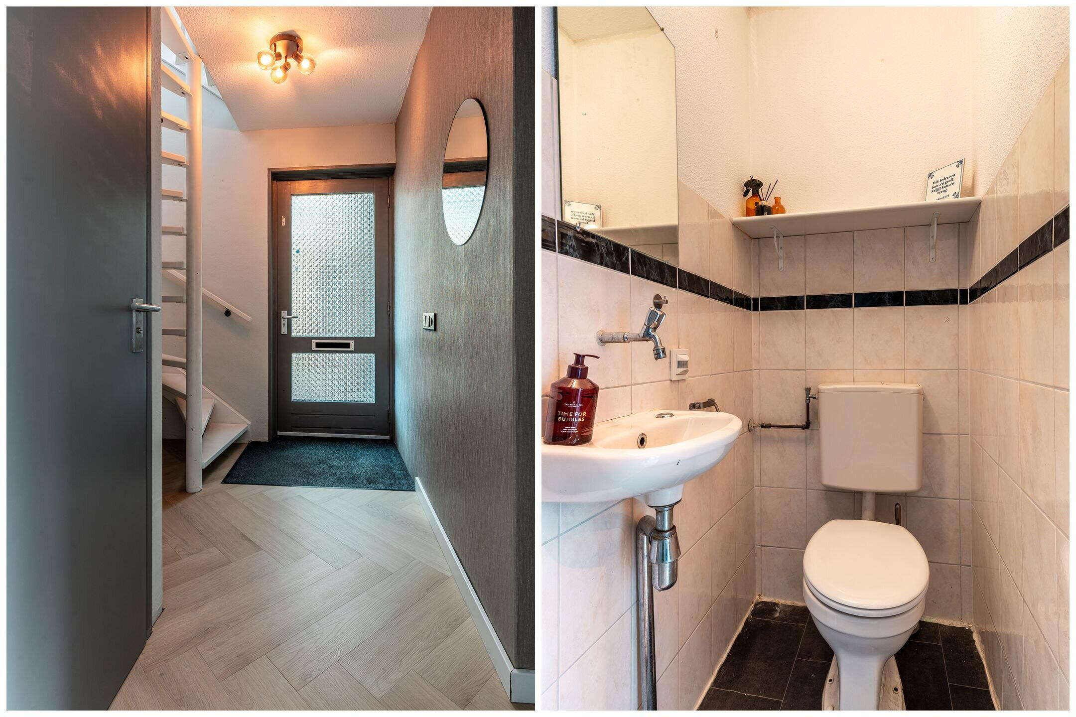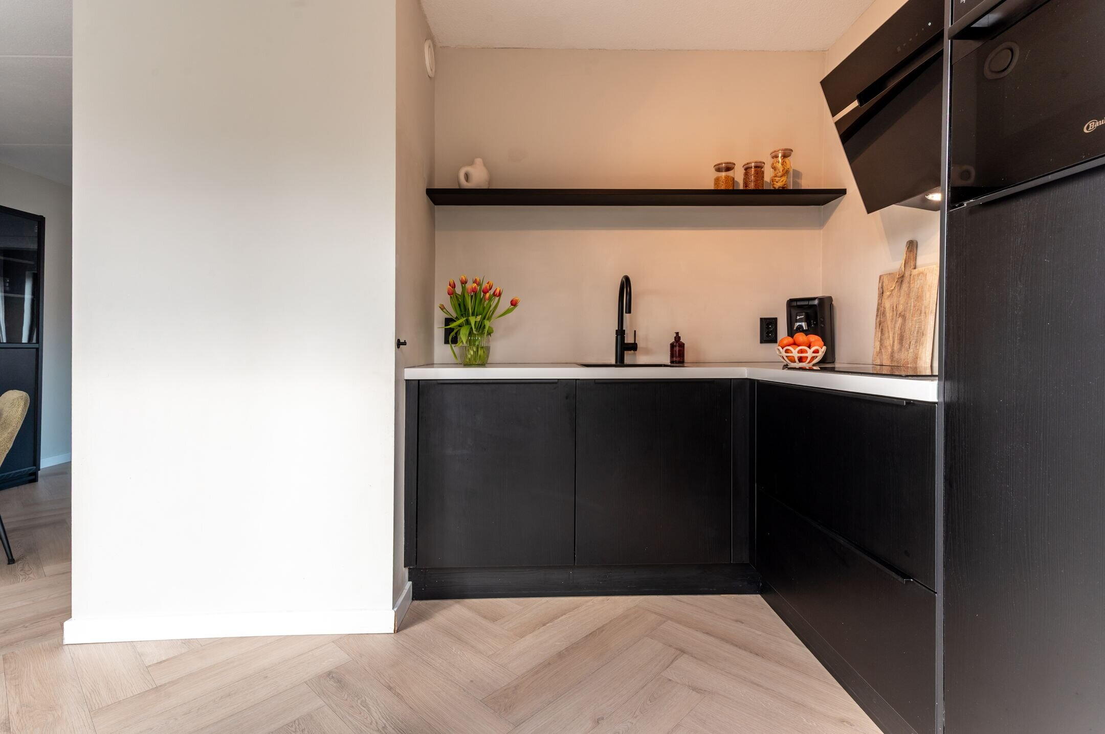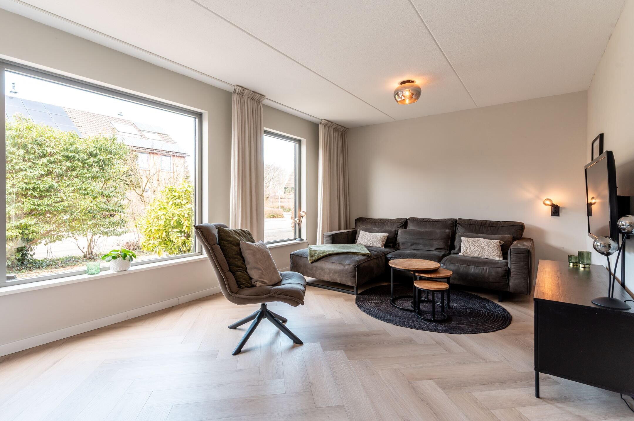 Begane grond: Entree; hal met toilet met fonteintje, meterkast (vervangen in 2023), trapopgang en toegang tot de woonkamer/ keuken; aan de voorzijde gelegen woonkamer van 27m² met open haard; aan de achterzijde bevindt zich de luxe inbouwkeuken uit 2023 in hoekopstelling welke is voorzien van een combi-magnetron, een geïntegreerde vaatwasser, inductiekookplaat, design afzuigschouw, Quooker, koelkast, kastruimte en voldoende ruimte voor een flinke eetkamertafel; vanuit de keuken is er toegang tot de tuin.