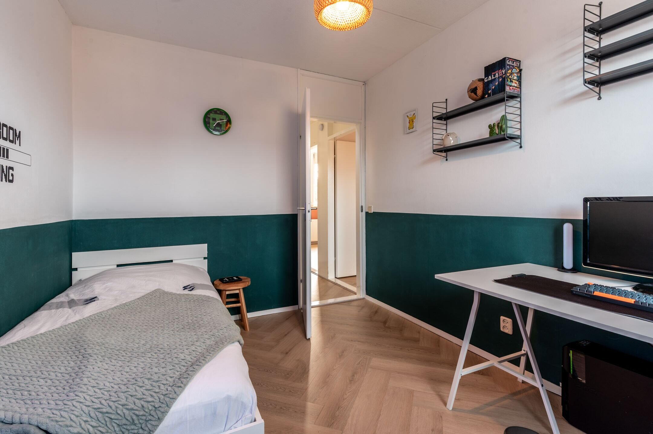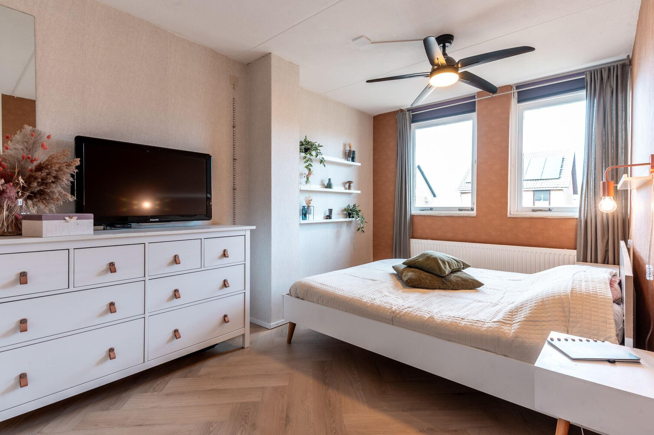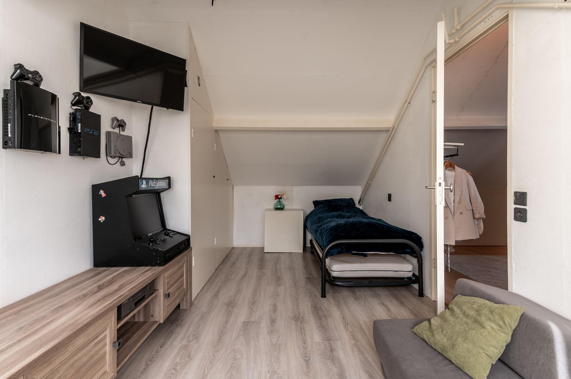 Tweede verdieping: Voorzolder met de CV (ATAG hr-combi uit 2015), de witgoedaansluitingen en flink wat bergruimte; een vierde slaapkamer van bijna 14m² met een vaste kast en een dakkapel.